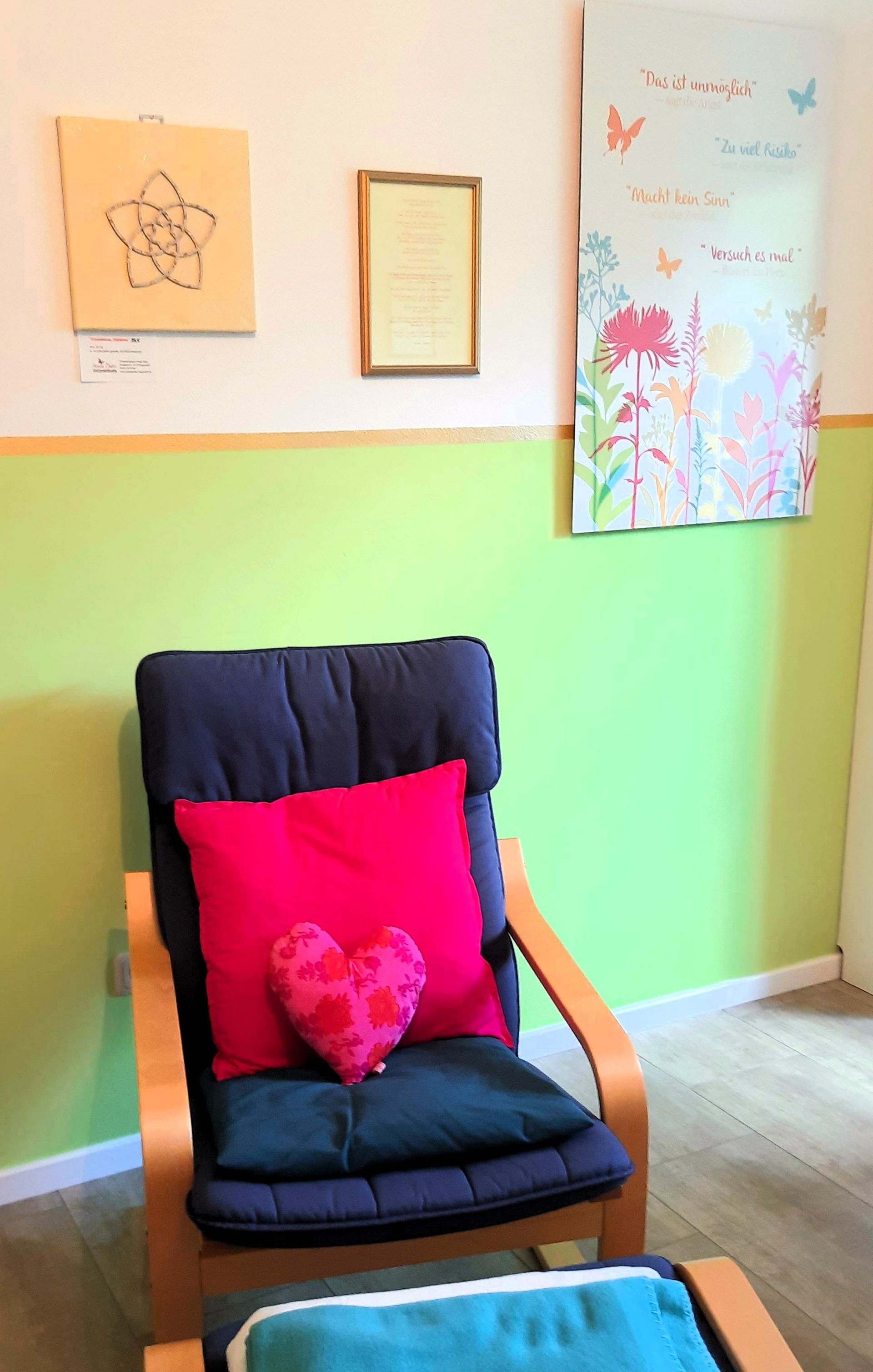 Meine Praxis ist sehr schön eingerichtet und liebevoll gestaltet. Sie liegt in Regenstauf-Steinsberg. Es sind kostenlose Parkplätze vorhanden.